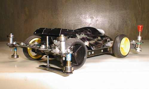 | ついでUP、ミニ四駆選手権全国大会用控えマシンです。レディースGPの時のマシンですね。実はこちらの方が遅いんです(苦笑) こちらもセッティングはあくまでもレース用なので、NIFTYのオフ会の時と違います。 |